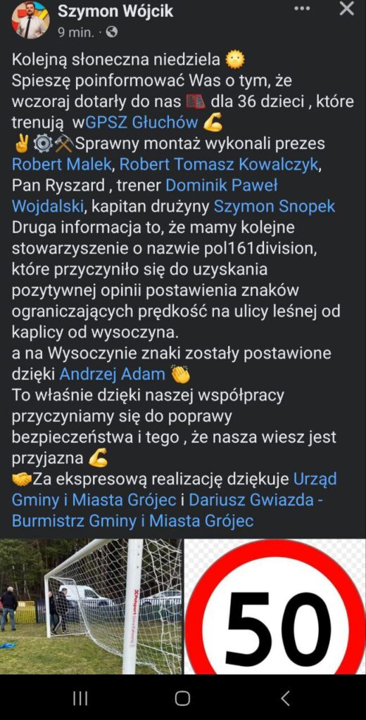 Witajcie, czas uzupełnić kolejny wpis. Wniosek, który złożyło nasze stowarzyszenie w dniu 14.02.2024, został pozytywnie rozpatrzony. Gdy zauważyliśmy, że brakuje znaku ograniczenia prędkości, natychmiast podjęliśmy działania i złożyliśmy odpowiednie pismo, poparte przez Sołtysa Pana Szymona Wojcika. W rezultacie poprawiliśmy bezpieczeństwo na odcinku drogi, gdzie nagminnie przekraczano prędkość, co mogło być przyczyną zagrożenia dla mieszkańców. Nasze pismo zostało potraktowane bardzo życzliwie i profesjonalnie przez Starostwo Powiatowe w Grojcu, za co serdecznie dziękujemy.