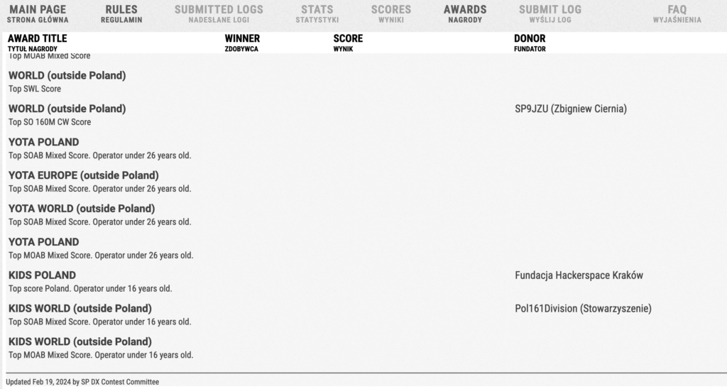 Są już wyniki zawodów, w których byliśmy fundatorami nagrody. Więcej informacji na stronie. SPDxcontest!